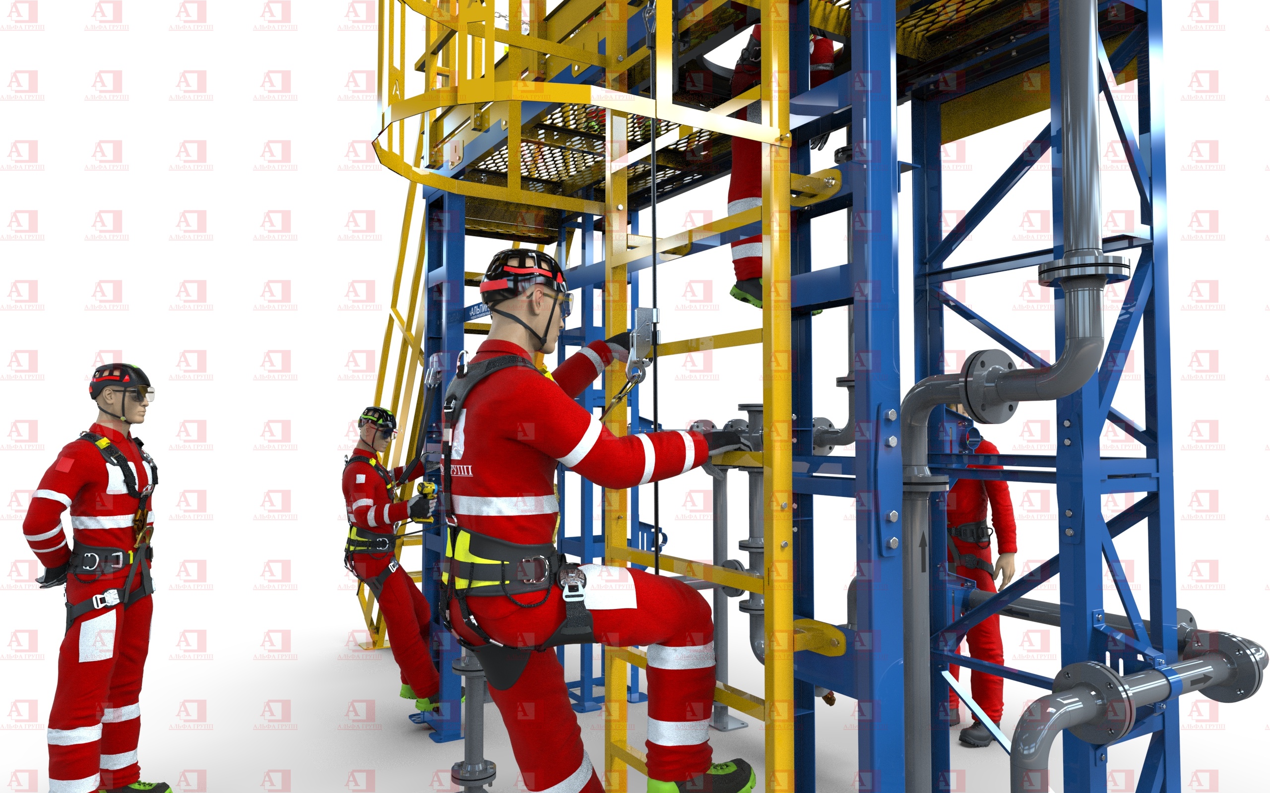 • Подъём по металлоконструкции с применением вертикальной гибкой анкерной линии;