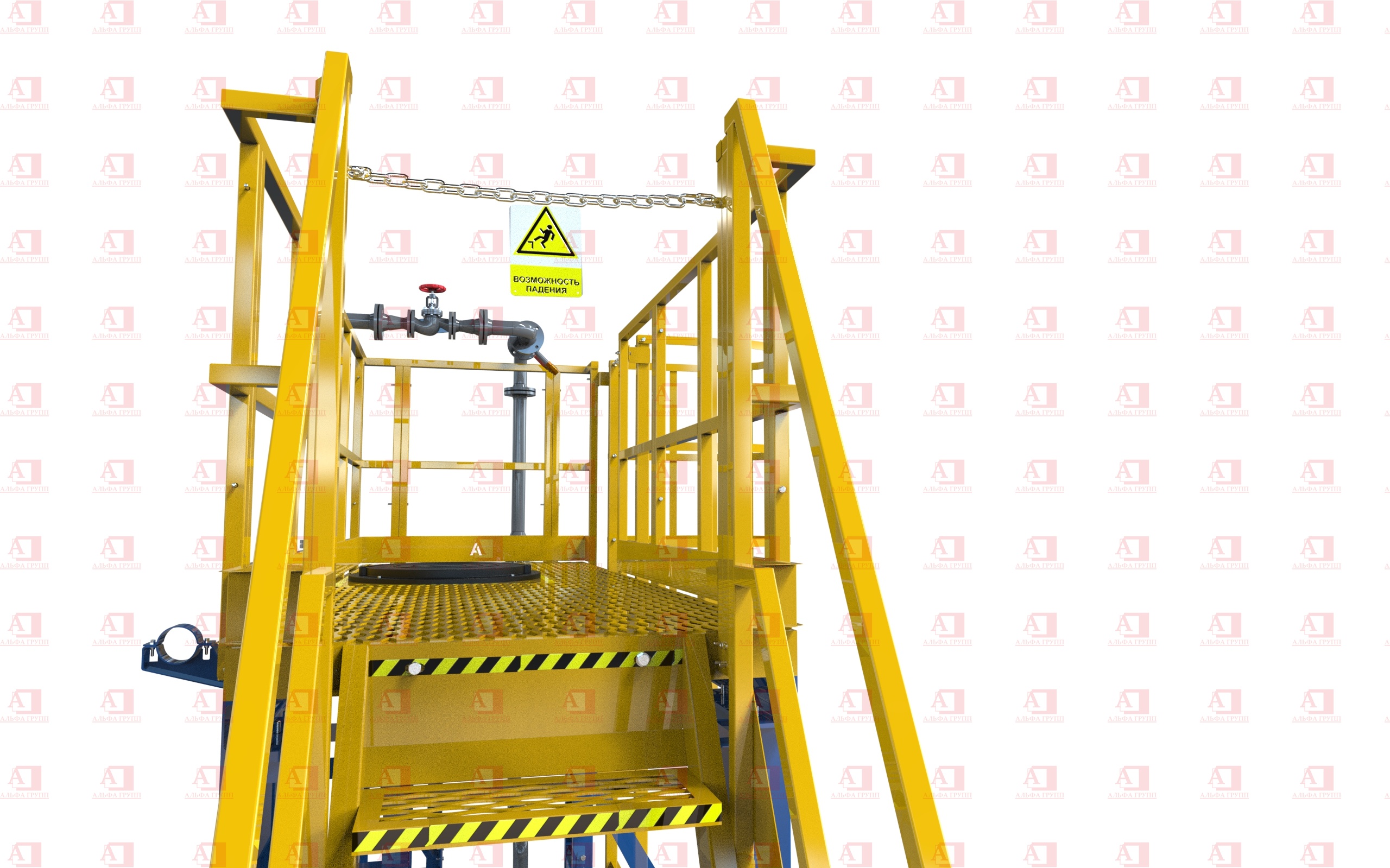 • Подъем на объект по приставной лестнице, с применением предустановленной анкерной линии установленной (зафиксированной) на опору;